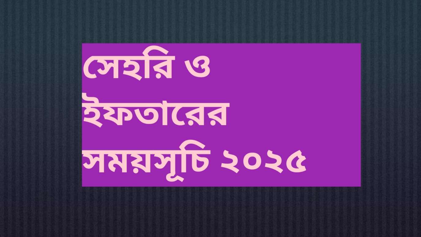 ২০২৫ সালের রমজান মাসের সেহরি ও ইফতারের সময়সূচি সম্পর্কে সর্বশেষ তথ্যের জন্য ইসলামিক ফাউন্ডেশন বাংলাদেশ কর্তৃক প্রকাশিত সময়সূচি অনুসরণ করা উচিত।